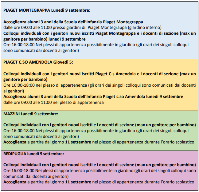 In allegato troverete le indizazioni per l'accoglienza dei nuovi bambini nei vari plessi della scuola dell'infanzia.